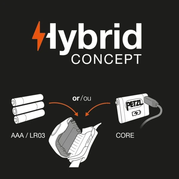 Enfin, elle est vendue avec 3 piles, mais peut aussi fonctionner avec la batterie rechargeable Core (non fournie) grâce à la technologie Hybrid Concept.