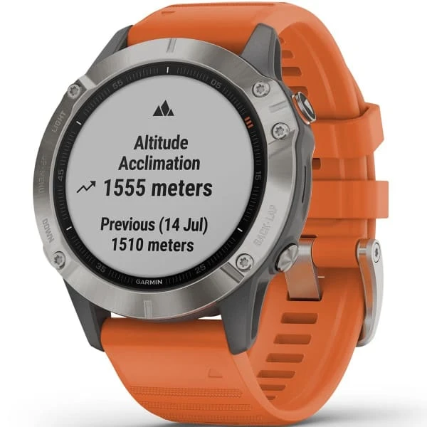 – Capteurs : GPS, GLONASS et Galileo. Fréquence cardiaque au poignet Garmin Elevate™, Compas, gyroscope, accéléromètre, thermomètre, oxymètre de pouls pour l’acclimatation, …
