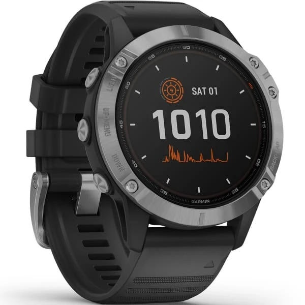 - Capteurs : GPS, GLONASS et Galileo. Fréquence cardiaque au poignet Garmin Elevate™, Compas, gyroscope, accéléromètre, thermomètre, oxymètre de pouls pour l’acclimatation, …