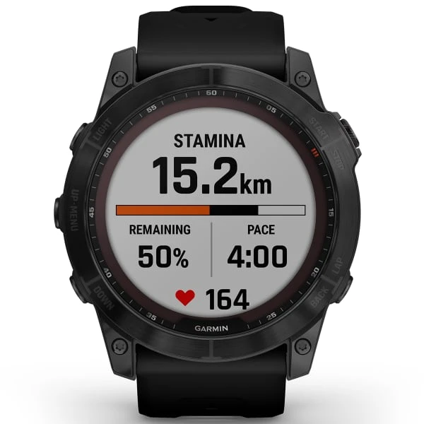 - Tactile et à boutons : Les fénix 7x sont à la fois équipées de boutons et d’un écran tactile qui fonctionnent dans n’importe quelle condition d’utilisation, ce qui améliore l’expérience de navigation principalement sur la cartographie