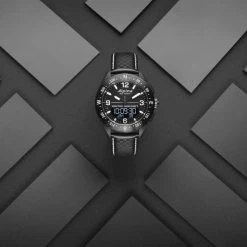 De toute beauté, cette montre haut de gamme associe des aiguilles et un écran numérique ainsi que des finitions soignées. Conçu en acier inoxydable, son cadran est résistant, tout comme son verre en saphir qui ne craint pas les rayures. Le bracelet en caoutchouc procure un grand confort autour du poignet, surtout pendant la pratique sportive, tandis que son étanchéité permet de la garder au poignet en zones humides.